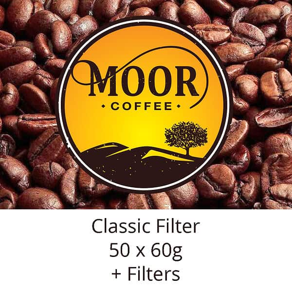 Medium roast, essentially mild and mellow without bitterness. A blend of Brazilian & East African coffees resulting in a fine flavour with slight acidity. For use with all pour over/filter machines. Supplied in a box of 50 x 60g sachets with filter papers.