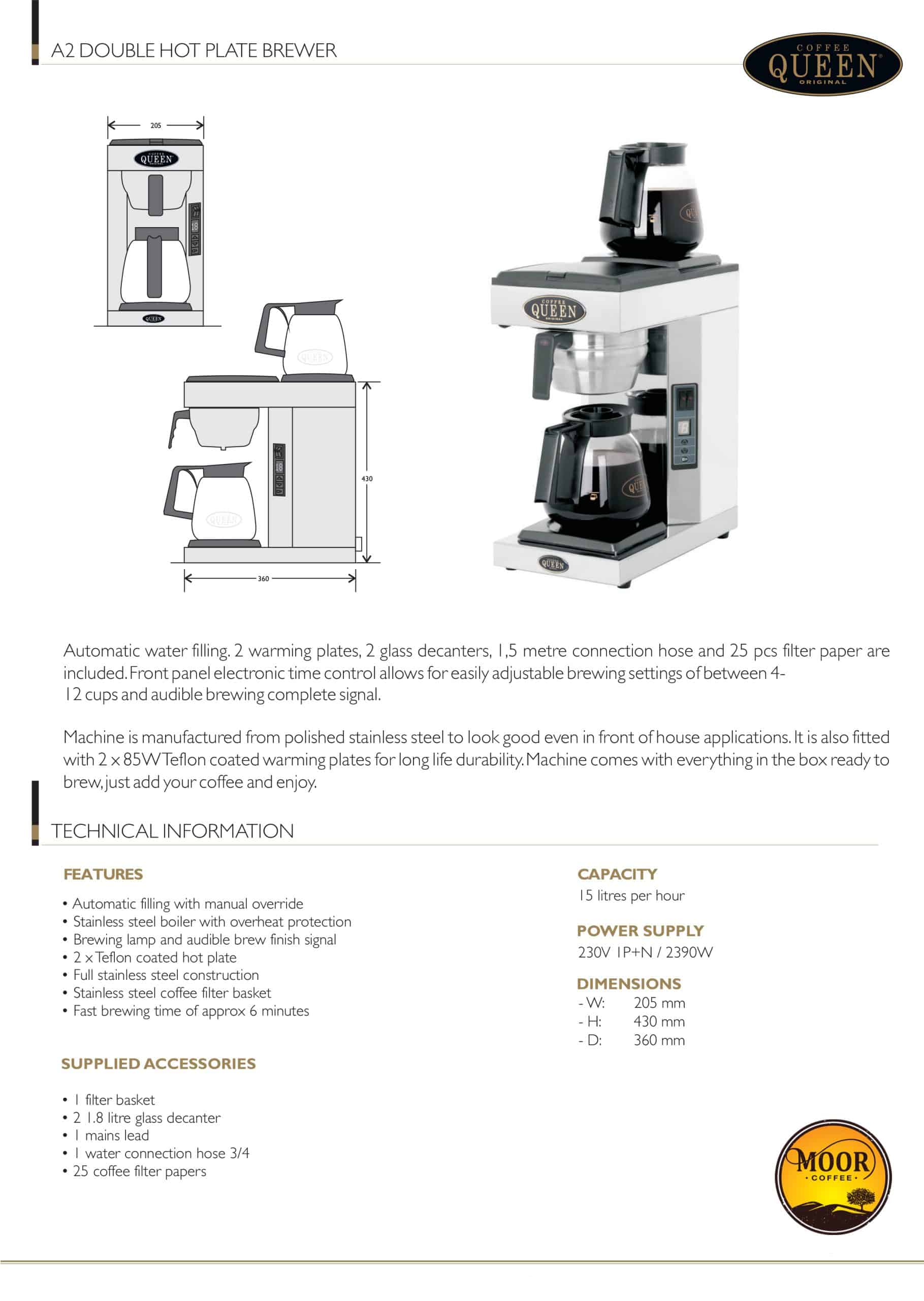 • Double Hot Plate System: Significantly featuring 2 x 85W Teflon coated warming plates for maintaining optimal coffee temperature on both decanters