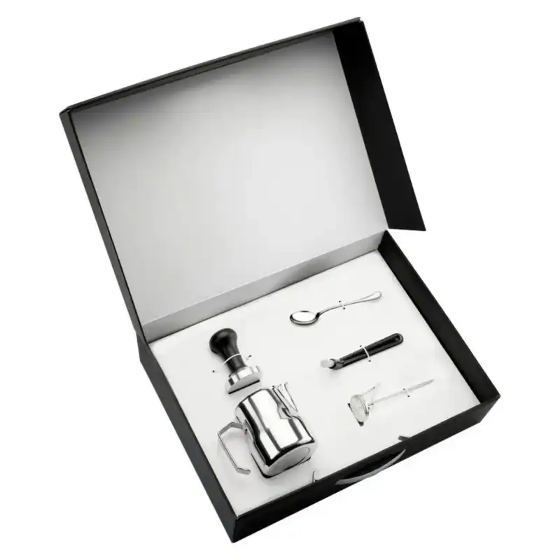 Invest in the Motta Barista Kit Napoli for unmatched Italian coffee preparation excellence combining traditional craftsmanship with modern functionality. Perfect for new coffee shops seeking professional-grade equipment, home baristas pursuing café-quality results, and coffee enthusiasts appreciating authentic Italian quality. Each component reflects Motta’s commitment to supporting coffee professionals worldwide, backed by over five decades of stainless steel specialisation and innovative design. The beautiful gift box presentation makes this kit an exceptional choice for coffee lovers seeking to elevate their brewing experience with authentic Italian tools that deliver professional results and enduring quality.